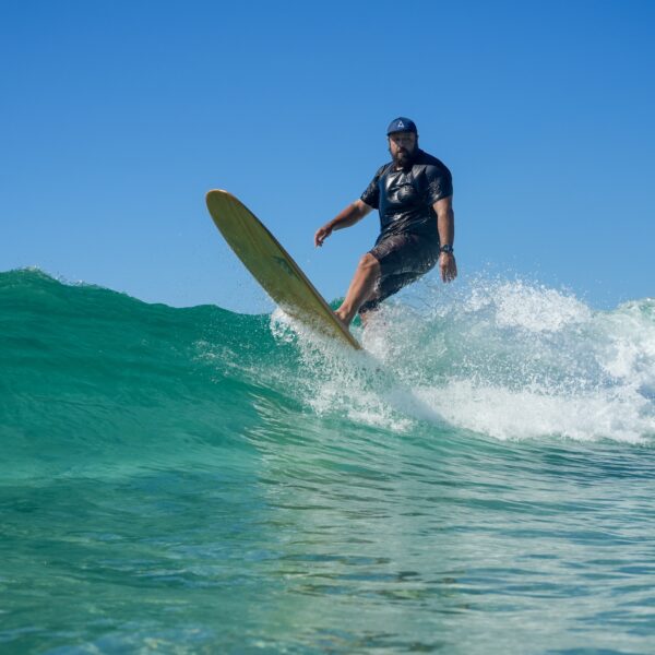 A surf coach for over a decade, Crawf understands progression better than anyone on the team. Between clients, you’ll find him on the points at Noosa. His advice on ability-matched destinations is worth its weight in gold.